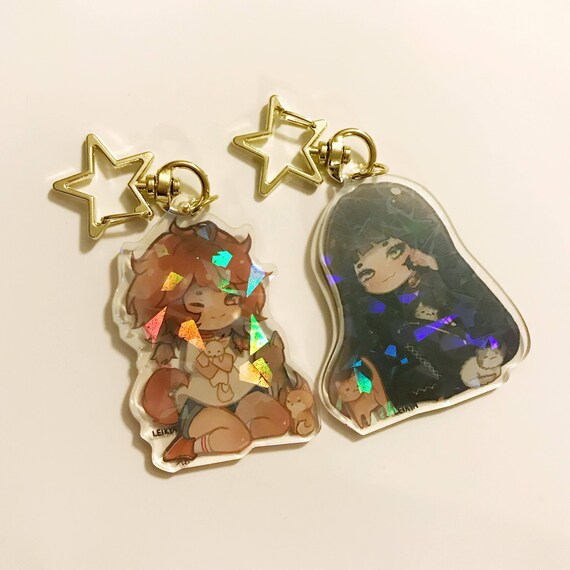 Cute Dog Witch Charm Anime Girl Holographic Acrylic Charm Double Sided Kawaii Chibi Shiba Inu Girl